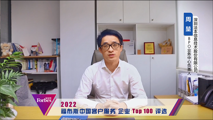 各位行業(yè)同仁大家好,我是法本信息BPO業(yè)務(wù)中心總監(jiān)周堃,2022福布斯中國客戶服務(wù)企業(yè)TOP100評選活動(dòng),有力地推動(dòng)了社會(huì)和顧客全面認(rèn)知企業(yè)服務(wù)品牌價(jià)值,建立企業(yè)品牌良好的社會(huì)形象,建立企業(yè)產(chǎn)品與消費(fèi)者之間的品牌契約關(guān)系,幫助企業(yè)提升消費(fèi)者的品牌忠誠度。 ... MORE>>